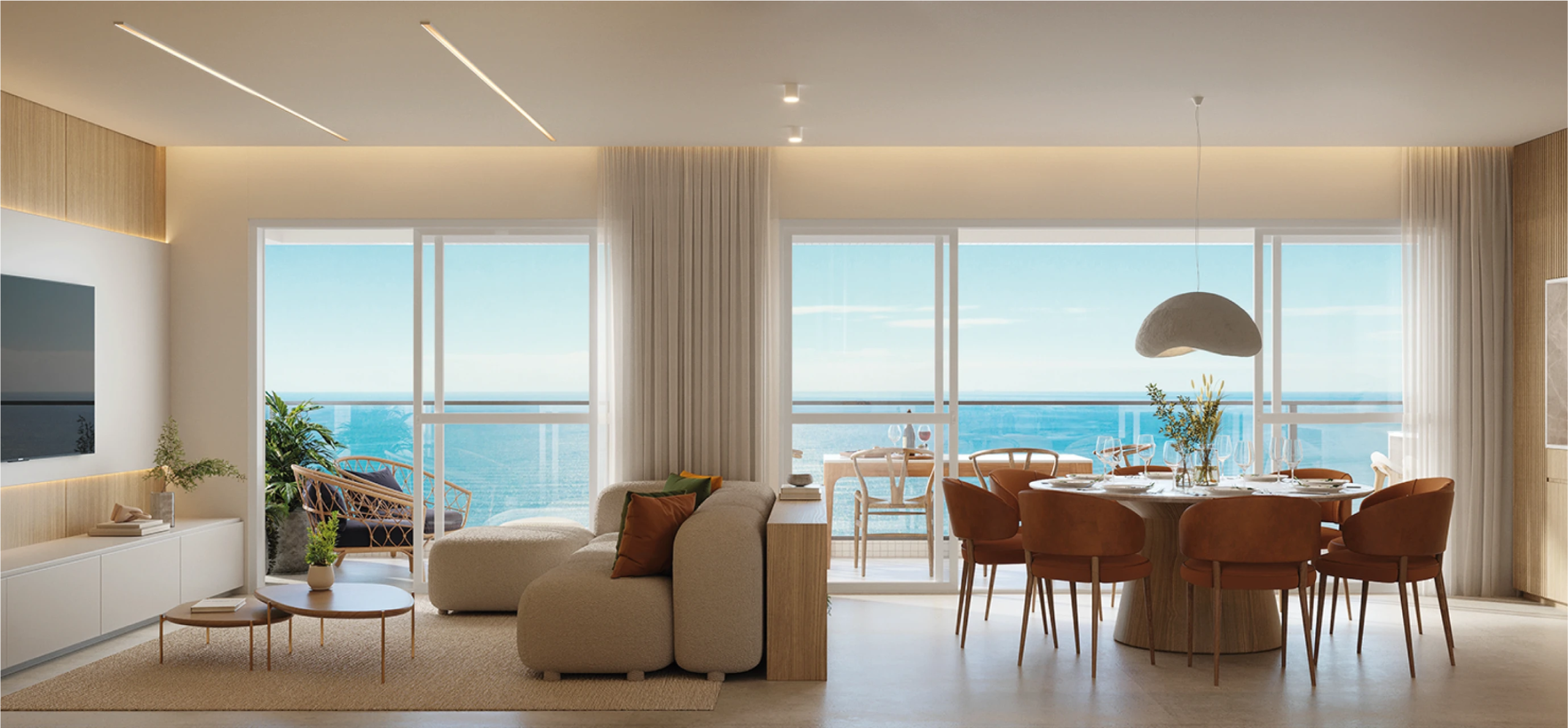 Pela janela, um convite diário: o cenário perfeito da vida à beira-mar. Um refúgio onde cada instante desperta os sentidos, cada vista emociona e cada segundo merece ser vivido. Seja caminhando na areia ou apreciando a brisa da varanda, aqui você vive a poucos passos do seu mais novo vizinho: o mar.